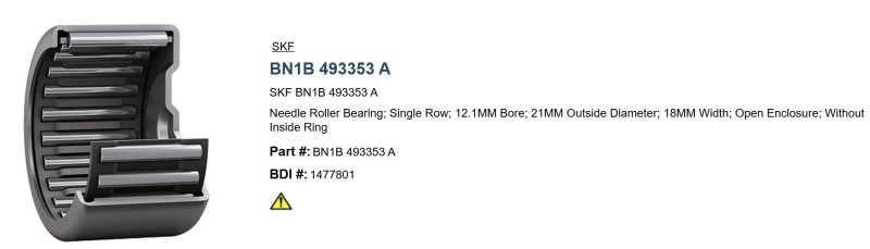 (11211-493353A) - SKF Needle Pilot Bearing (possible 11211276551 alternative) (2 available)
