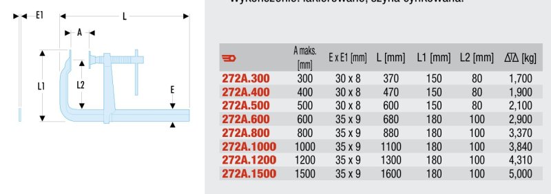Facom Pump-action Bar Clamp - 272A series . Maximum capacity = 300mm (11.8"). Features include.........