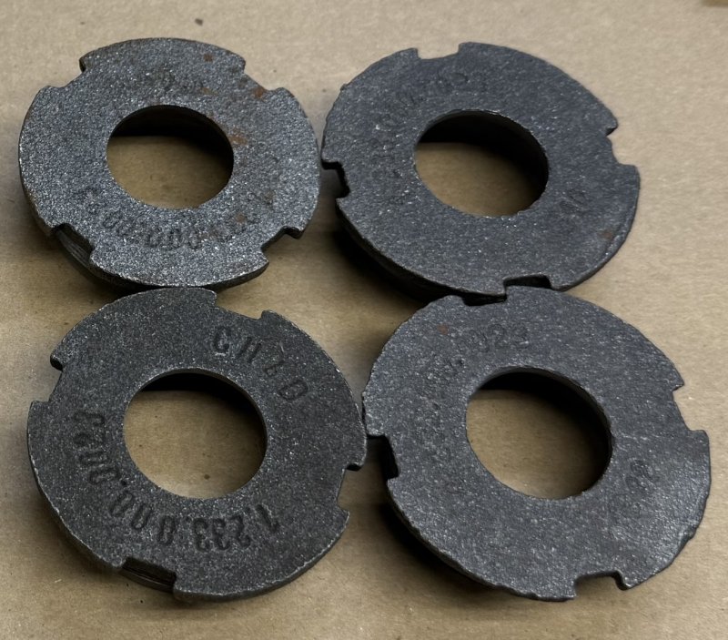 Boge Strut Threaded Cap (M48x1.5 External Thread - E9/E12/E28, E30, E23/E24 - these are cast iron caps that came with strut inserts that I've sold over the years. They should work with most or all of the installations (except Bilsteins) that are on the application list. Take a look at the comparison photos.