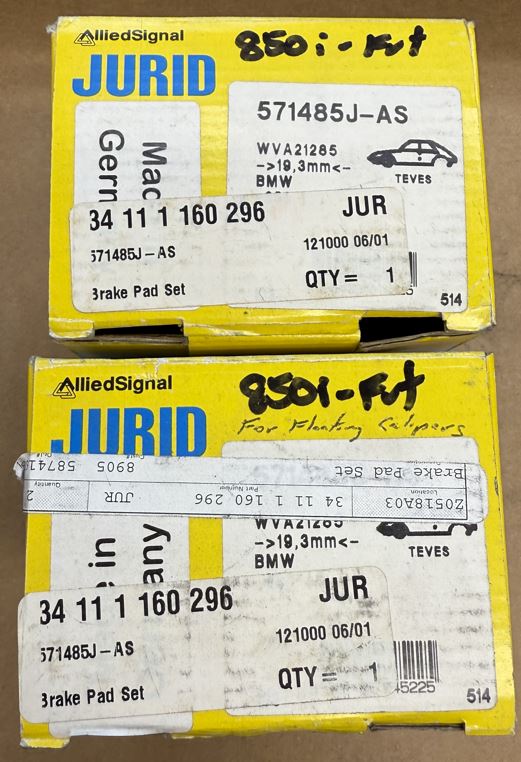 (34111160296)-Brake Pad Set (Front with Shims) - 850i/850csi w/floating calipers (91-95) (Jurid=OEM) (2 sets available)