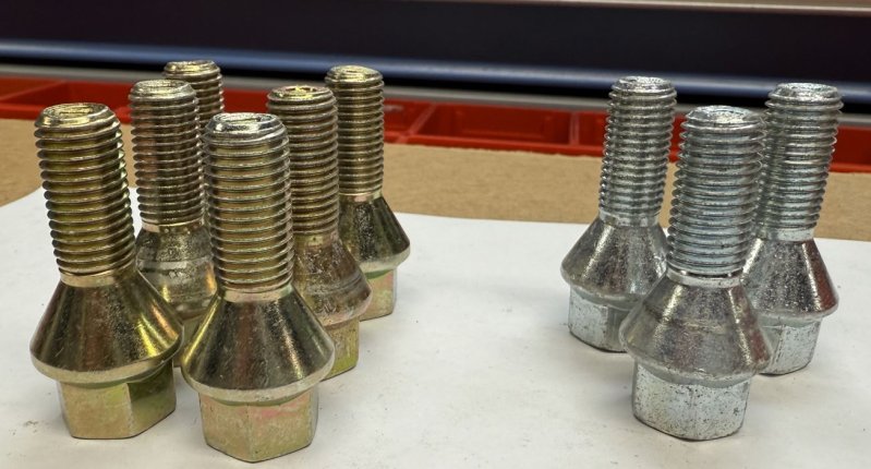 Wheel Lug Bolt (Silver Zinc plated)- (M12x1.5) E12/E21/E23/E24/E30/E28/E32/E34/E36/etc (6 available). These are NLA through the dealer and have been replaced with the 36136781150 black lug bolts. These are standard length, approx 25mm threaded below the tapered seat, and should NOT be used with wheel spacers. |