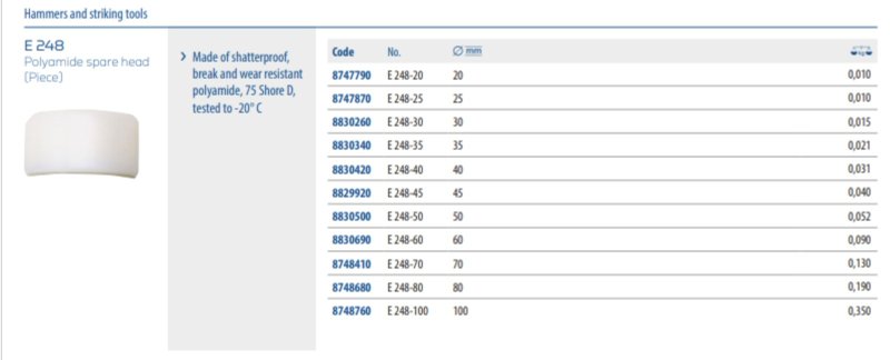 Polyamide Spare Hammer Head-40mm (for Gedore 248 series deadblow hammers with 40mm tips) (price is PER head) - special order. Lead time is 1-4 weeks. |