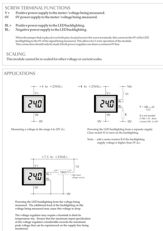 Lascar "PanelPilot" - a 3-digit 2-wire signal voltmeter, 4-25v, with ±200 mVDC full scale reading. See cut sheet for details. (5F)
