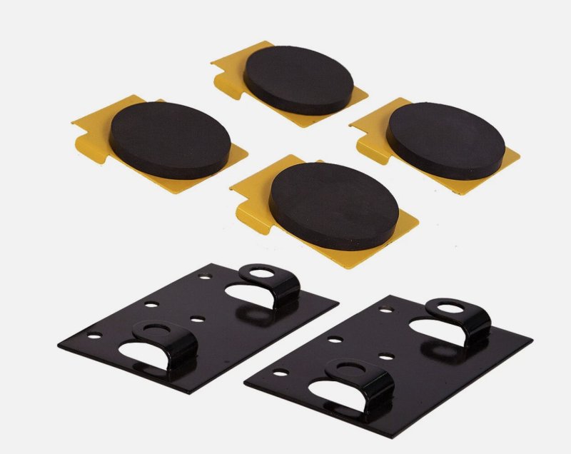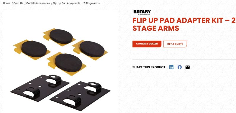 A set of 4 new Rotary lift pads (with plates) that I never used with my mid-rise lift. This was a backup set. Includes a pair of plates that can be wall mounted or attached to the lift posts (in some situations) to hang the four FJ697 adapters when not in use.